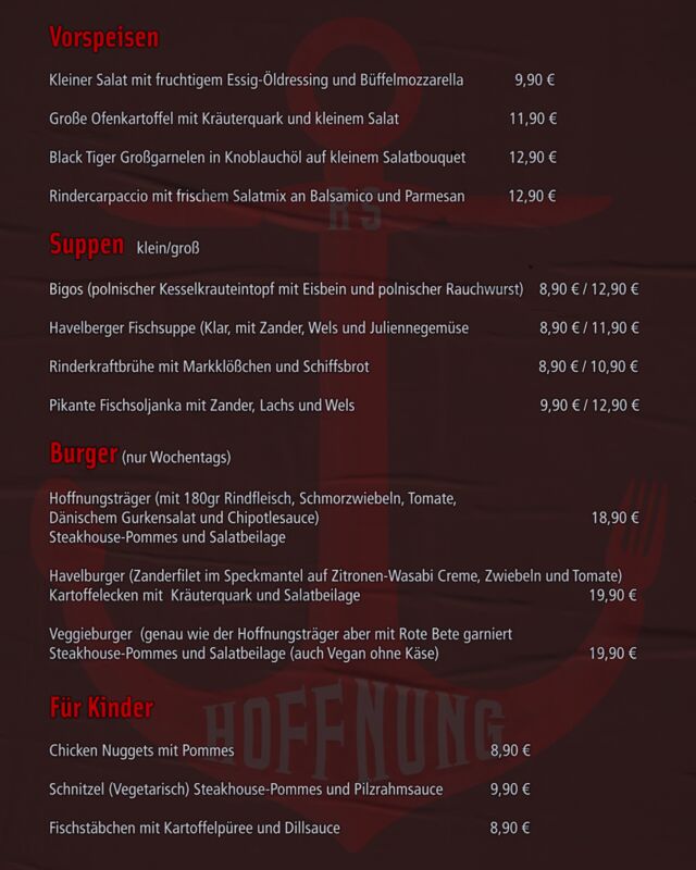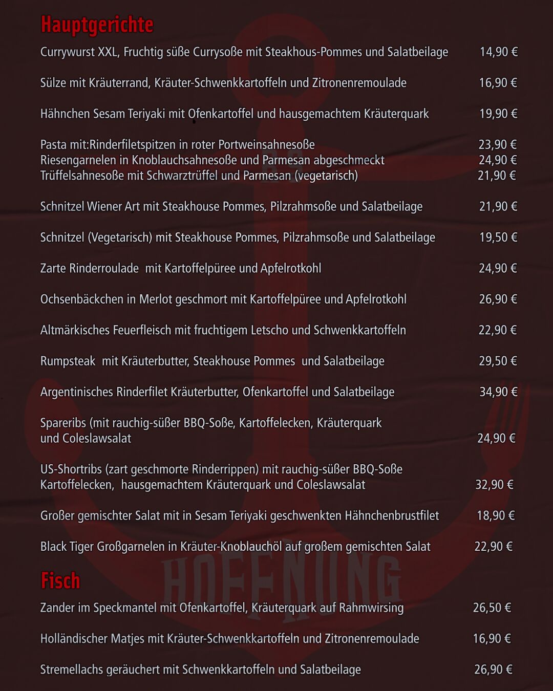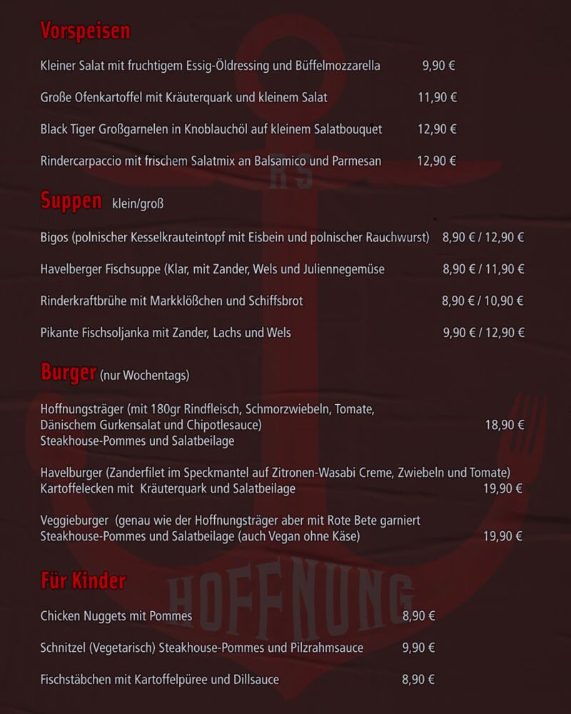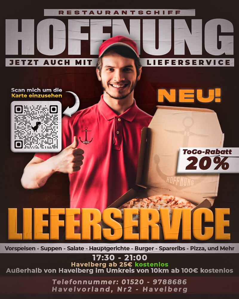 A warm welcome awaits you at Restaurantschiff Hoffnung. We're excited to be your host in Havelberg! We can't wait to welcome you to our steakhouse. Delicious dishes of american cuisine, german cuisine, international cuisine, and polish cuisine will be offered to you. Awesome dishes is served by our friendly staff. Our flavoursome food await you! Bring your friends and family and enjoy them. Make sure to try our variety of cakes and tarts, ice cream, dessert, and waffles. At our establishment, we cater to your individual dietary preferences by providing a range of halal, lactose free, and vegetarian options. Refreshing beverages are also available to complement your meal. Sit back, relax, and enjoy lunch, dinner, and afternoon tea in our exquisite establishment. We have nice live music, beer garden, darts, and music, on top of our great service.